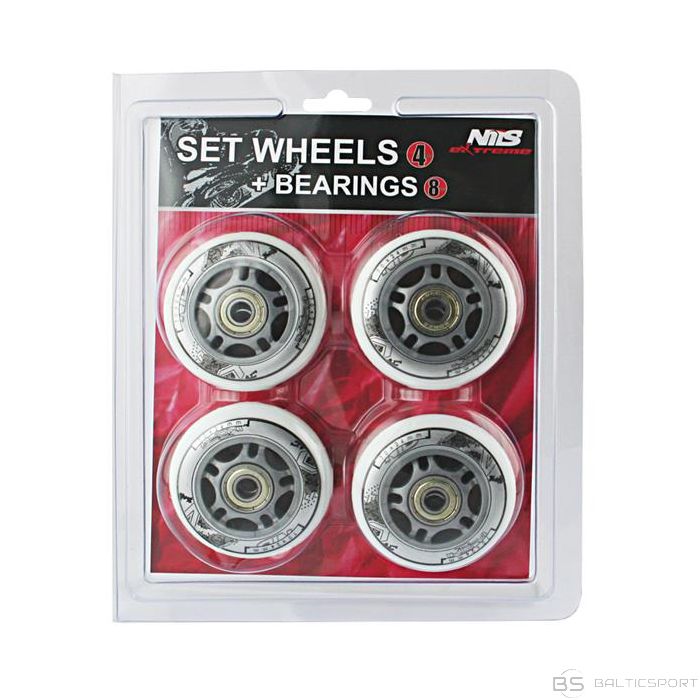 Nils Extreme PU 64x24 82A WHITE (4 gab.) + ABEC-7 (8 gab.) KOMPLEKTS