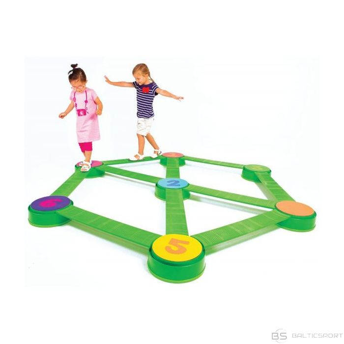 Balansēšanas celiņš ar saliņām ir izliekams vairākos veidos. Saliņas ar cipariem ir savstarpēji maināmas, var veidot paaugstinājumu, saliekot divas - vienu virs otras. Laipas ir veidotas ar neslīdošu, rievainu faktūru. Šī aktivitāte veicina motoriku un sensoriku. Celiņu izvietojumu veido atbilstoši bērna vecumam un spējām. Komplekts sastāv no: 7 neslīdošām saliņām (diametrs 30 cm, 10 cm augstums) 10 savienojošiem tiltiem ( 72 x 12,50 cm) 7 maināmiem krāsu un ciparu šķīvjiem. * nav toksisks