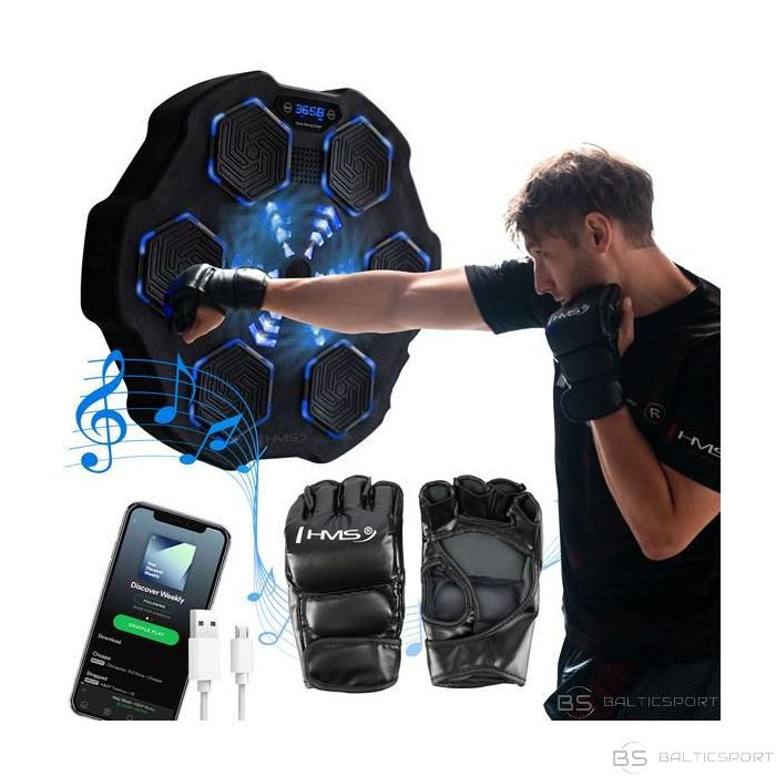 TB02 INTELIGENTAIS MUZIKĀLAIS BOKSA TRENAŽIERS AR BLUETOOTH UN CIMDIEM HMS Paceliet savu treniņu jaunā līmenī ar HMS elektronisko boksa vairogu. Šis uzlabotais vairogs apvieno tradicionālā boksa treniņa intensitāti ar modernām tehnoloģijām, piedāvājot unikālas iespējas attīstīt boksa prasmes un veicināt tauku dedzināšanu. Komplektā ietilpst arī īpaši MMA cimdi! Vairogs, kas nosaka treniņa dinamiku. Mūsdienīgais HMS elektroniskais boksa vairogs ir aprīkots ar dinamisko apgaismojuma funkciju, kas aktīvi nosaka vienu no sešiem laukumiem, kuros lietotājam jātrāpa. Gaismas uz ciparnīcas iedegas dažādās vietās un secībā, liekot lietotājam ātri reaģēt un sist precīzi. Šī funkcionalitāte ne tikai palielina treniņa iesaisti un intensitāti, bet arī ļauj lietotājam attīstīt roku-acu koordināciju un reakcijas ātrumu. Izvēlieties savu optimālo treniņu programmu.