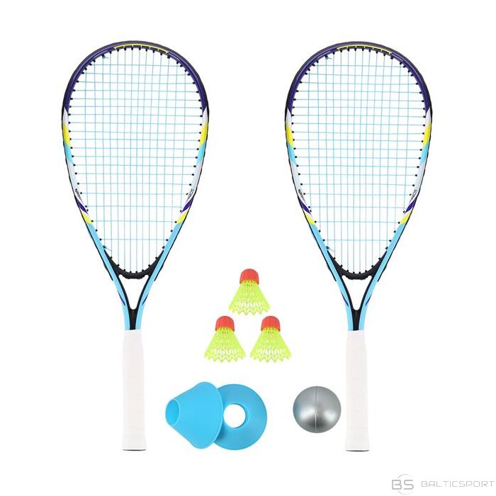 Nils NRS005 KROSSMINTONA KOMPLEKTS 2 RAKETES + SHUTTLECOCKS + MARĶERI + Bumba + vāks