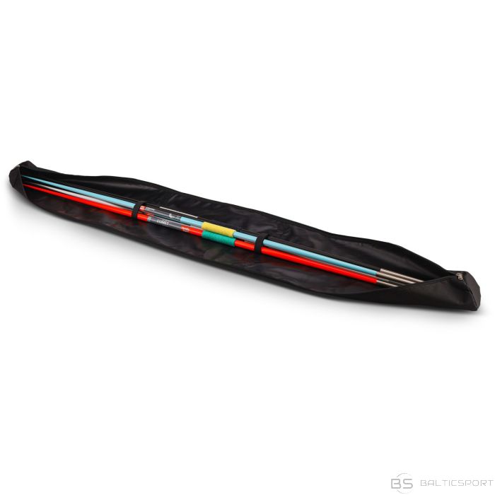 Mūsu šķēpu somas ir pieejamas šķēpiem, kuru svars ir no 400 g līdz 800 g, un tajās var ievietot piecus vai desmit šķēpus. Atkarībā no šķēpu modeļa un diametra var ietilpt arī papildu šķēpi. Šajā somā lieliski iederas arī bērnu kārtslēkšanas kāti: 500 g versija ir labi piemērota 2 m garām kātiem, savukārt 800 g versija ir ideāli piemērota kātiem līdz 2,65 m garumā.