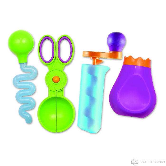| IDEĀLI IZMANTOŠANAI SENSORAJĀS SMILŠU KASTĒS un ŪDENS TRAUKOS. Komplektā ietilpst četri priekšmeti saspiežama pudele, griezējs, viļņains pilinātājs un lāpstiņa, kas ir tieši piemērota mazuļa rokām. Smalkās motorikas ROTAĻLIETA MAZIEM BĒRNIEM: katrs rīks interaktīvas spēles laikā demonstrē atšķirīgu fizisko koncepciju, kas stiprina roku muskuļus un koordināciju. Izturīga plastmasas konstrukcija, pateicoties tai rotaļlietas ir pietiekami izturīgas braucieniem gan uz pludmali, gan vannā vai ūdens galdā vai sensorajā smilšu kastē. |